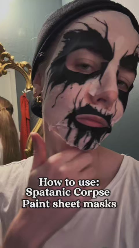 This set includes one dry Corpse Paint mask sheet and a vial of Spatanic® organic sheet mask serum. Follow the detailed instructions in the packaging for a pampering, 100% natural and organic s(k)incare ritual.