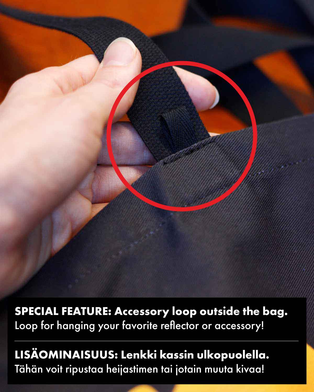 Exterior Loop for a Reflector or Other Charms – A small, smartly placed loop at the base of the handle on the bag’s front provides the perfect spot for a reflector, keychain—or even a Pokémon, Labubu or whatever you wish.