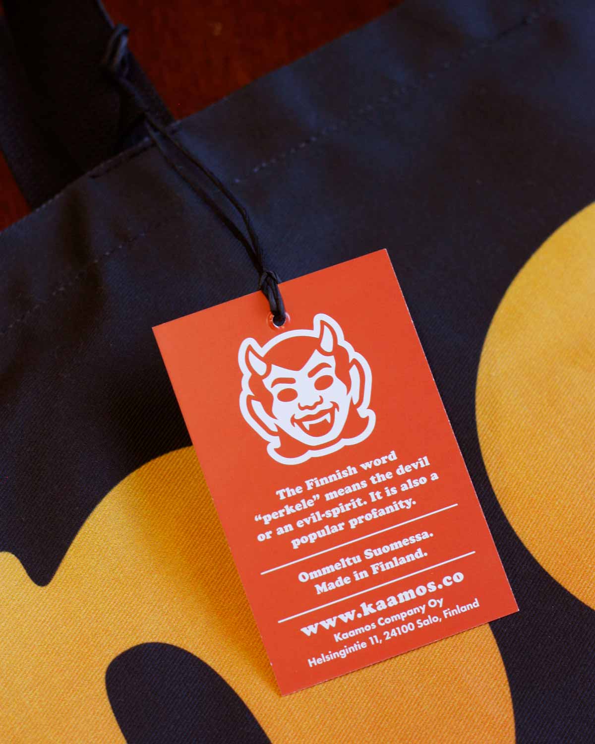 Meet your new favourite tote! Finnish word "PERKELE" means the god of thunder (in Finnish folklore), devil or an evil-spirit. It is also a popular profanity.