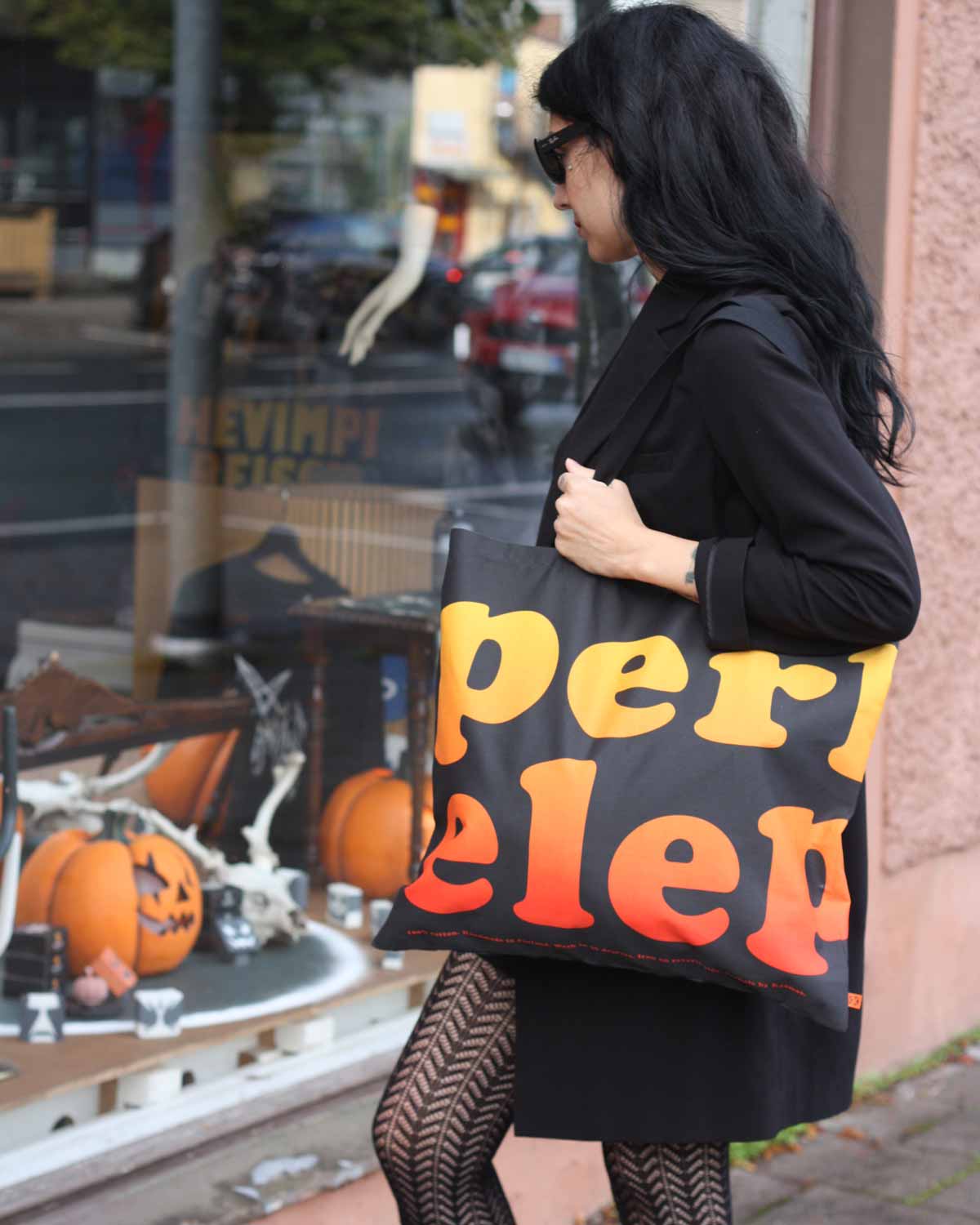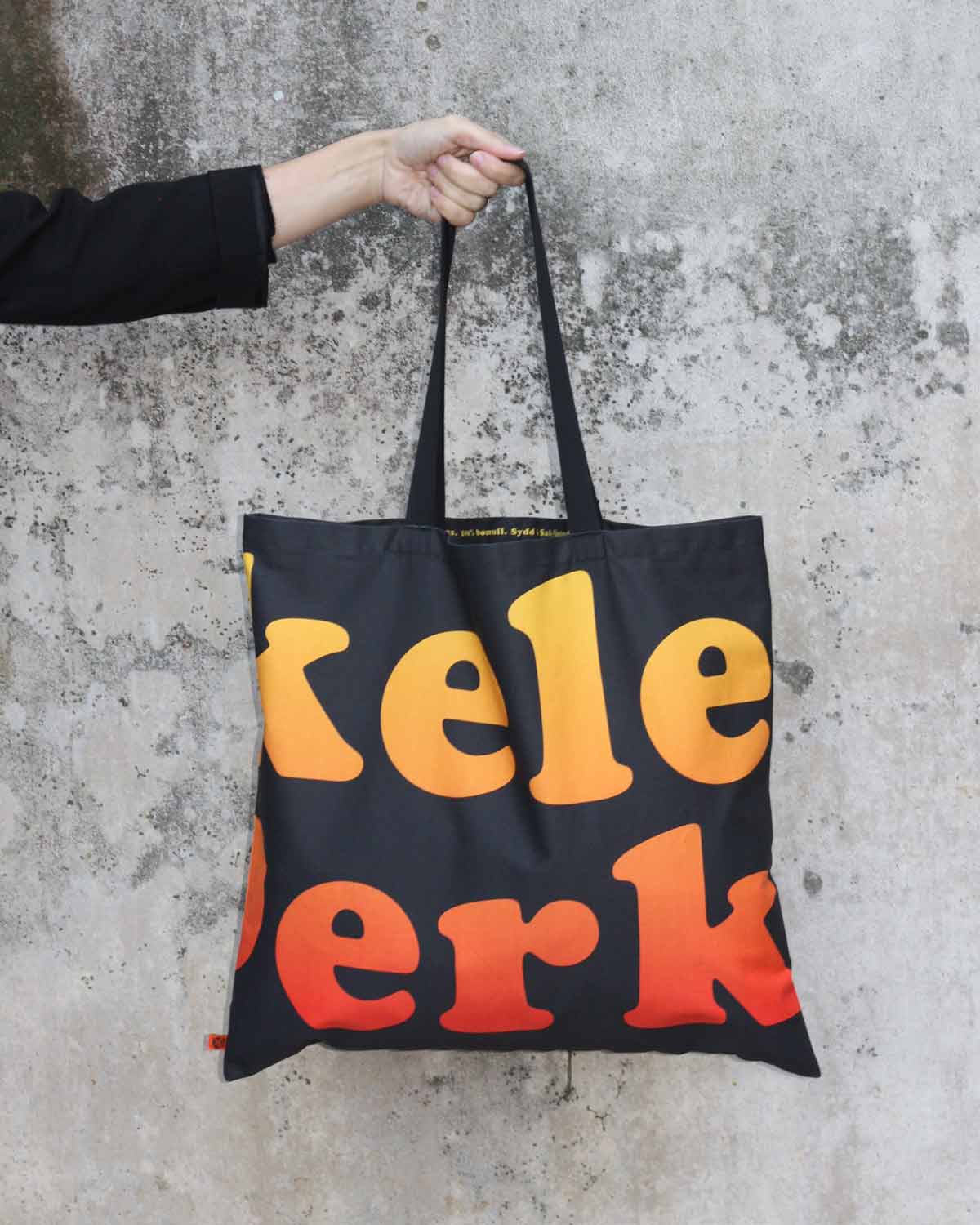 Perkele every day tote bag, Large size, Autumn colors with big lettering