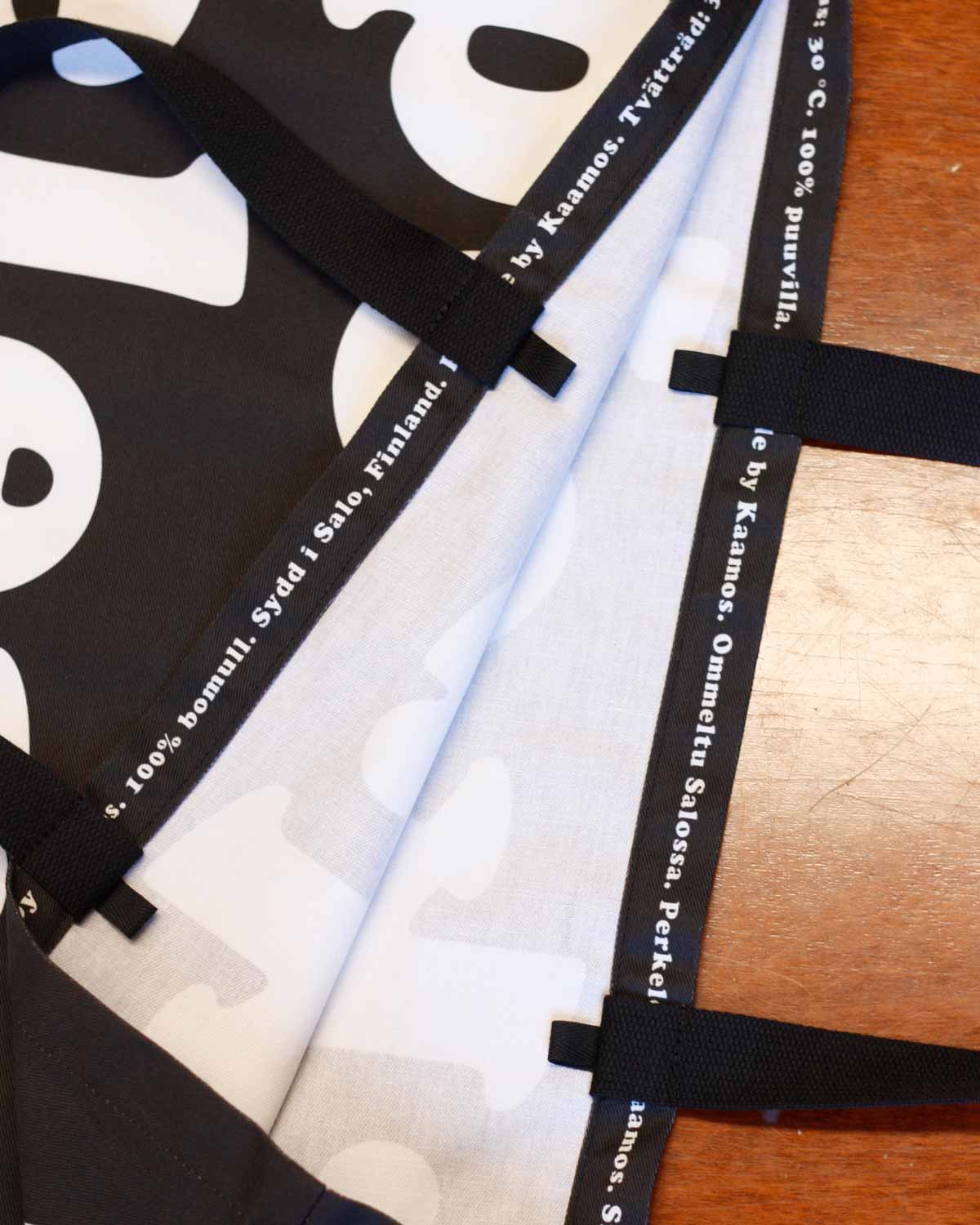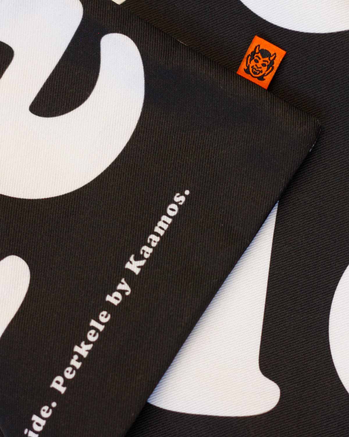 This oversized fabric tote bag is hand-sewn in Salo, Finland, in collaboration with a local partner. The Perkele fabric is an exclusive Kaamos design. The bag was created originally as a playful parody of the Finnish tote bag craze and has now transformed to be more edgy than ever!