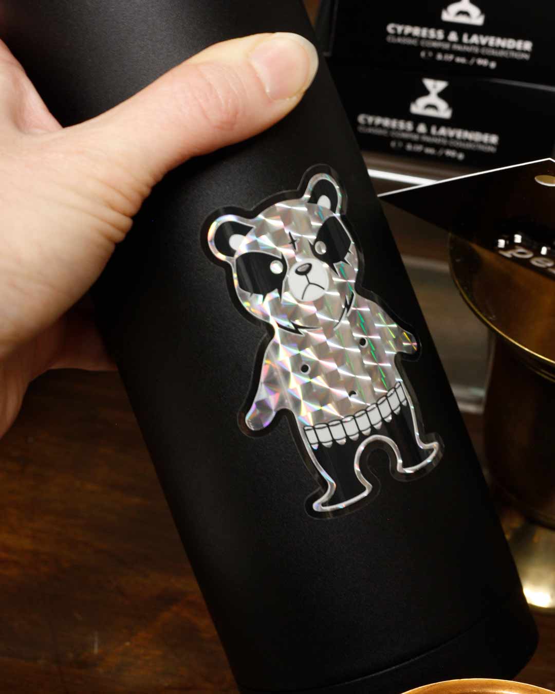 JP Ahosen kanssa yhteistyössä ideoitu Saatanalle-design prismaattisena tarrana. Sopii myös ulkokäyttöön.