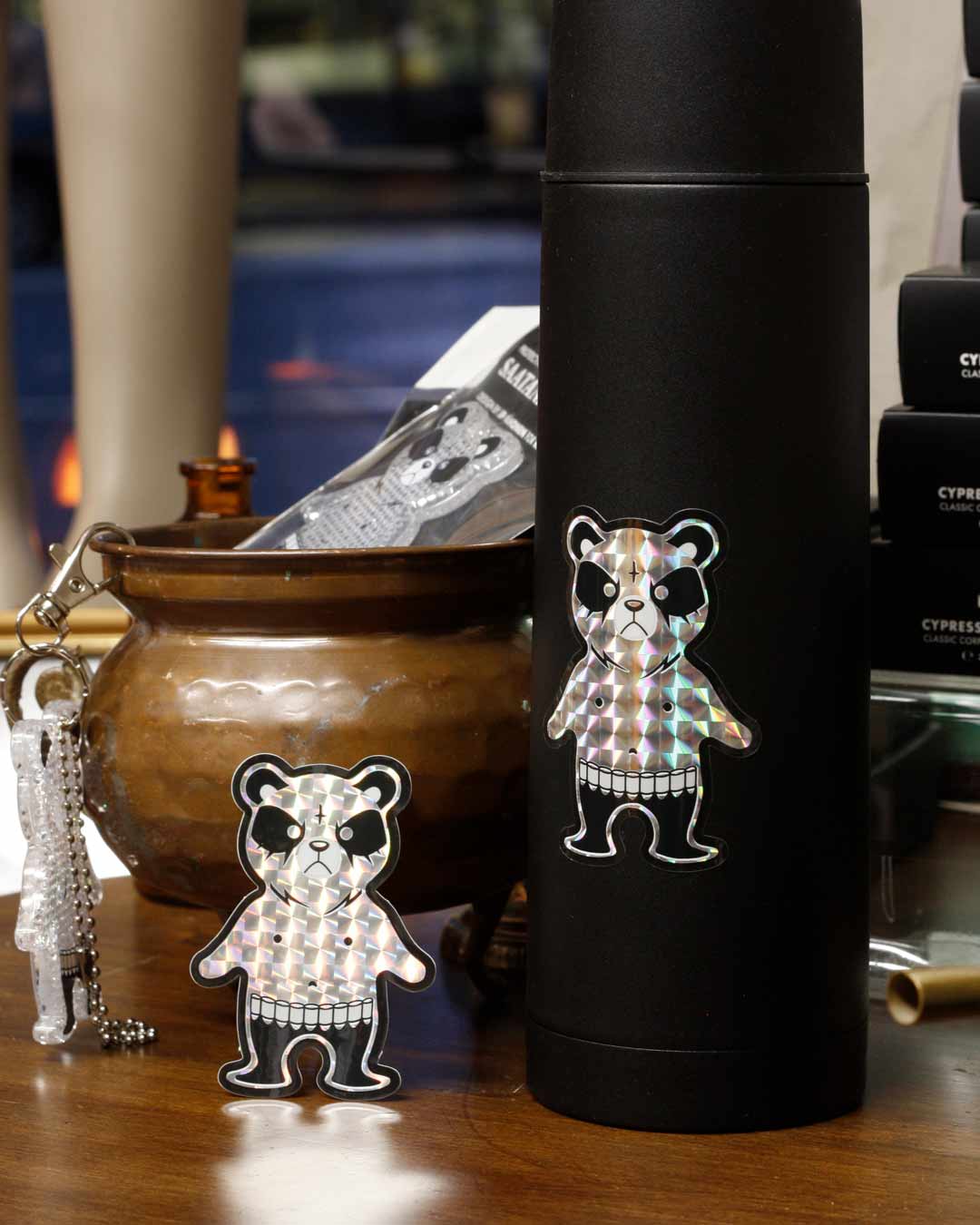 Our Saatanalle reflector design as a prismatic sticker for your delight. Also suitable for outdoor use.