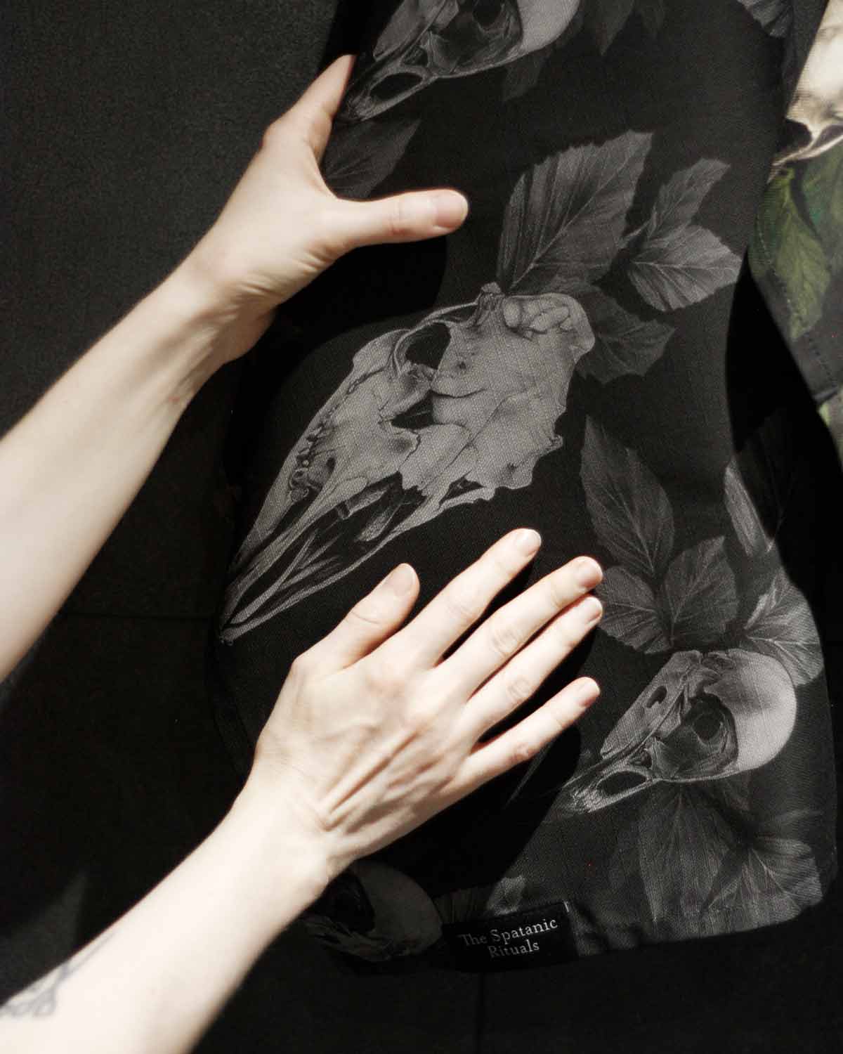 The custom print is designed in collaboration with a Finnish tattoo artist Fera Obscura. She is known for her stunning gray scale tattoo art with inspiration from nature, occultism, fantasy, dark art and popular culture.
