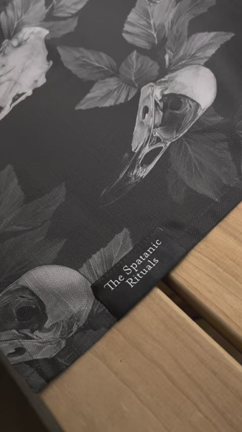 Spatanic Rituals sauna towel for two, laudeliina, Large skulls pattern