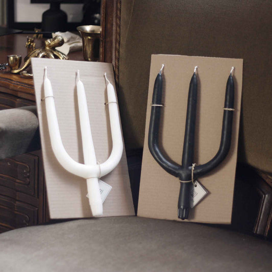 Our curated selection of unique candles and matches will give a pure nordic touch to your dinner table - and just as well elevate any occult or gothic style home interior. The black branched candles are custom made for us with traditional hand-dipping method. Pair them with our Spatanic Ritual Matches and voilà!