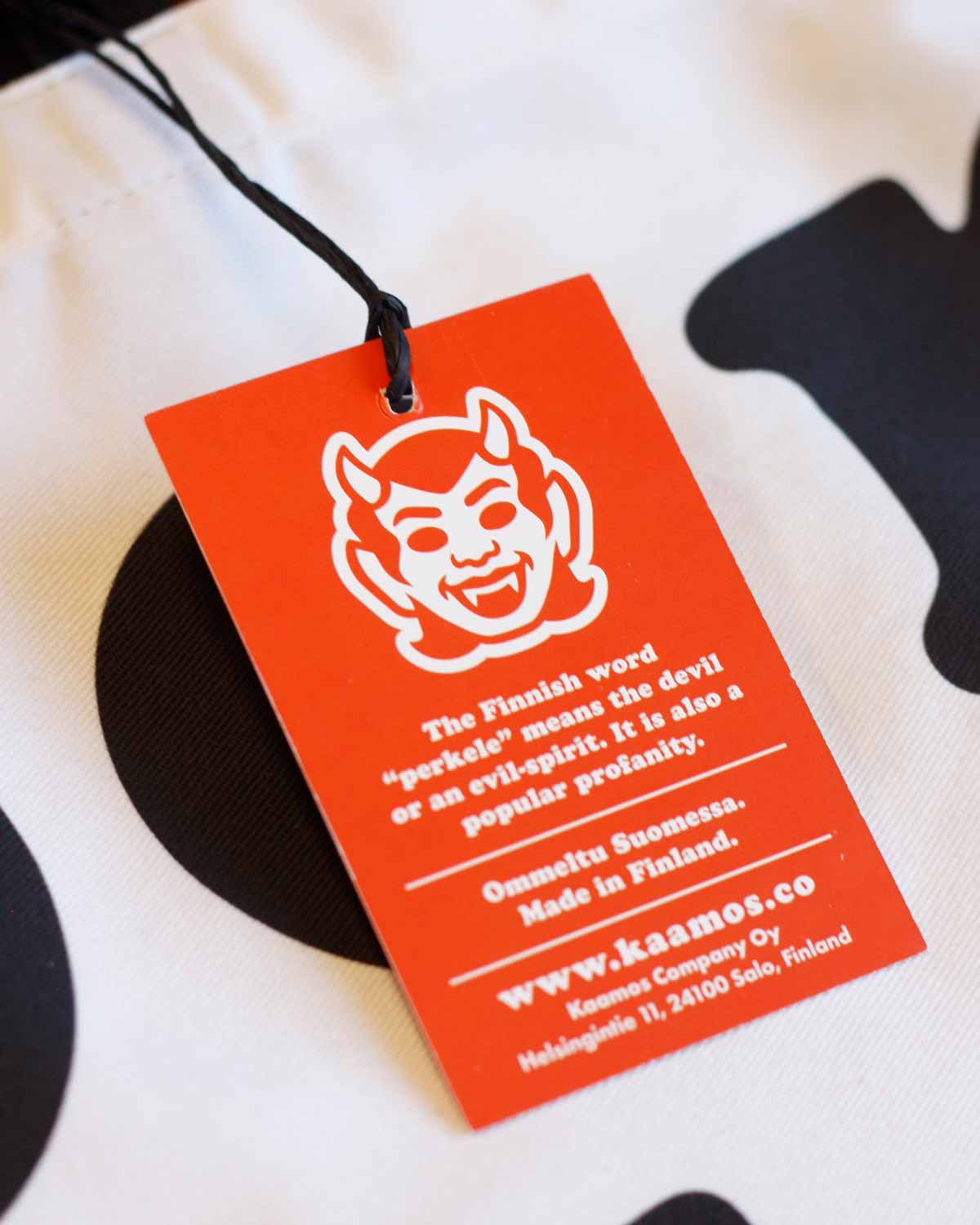 Meet your new favourite tote! Finnish word "PERKELE" means the god of thunder (in Finnish folklore), devil or an evil-spirit. It is also a popular profanity.