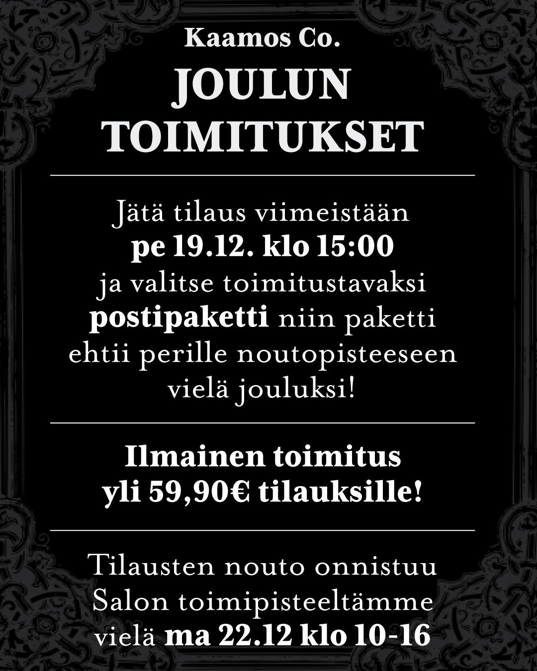 Kaamos Co. on ylpeästi suomalainen verkkokauppa. Toimitan kaikki verkkokaupan tuotteet suoraan työpajaltani Salosta. Meiltä lähtee paketteja ympäri maailmaa!